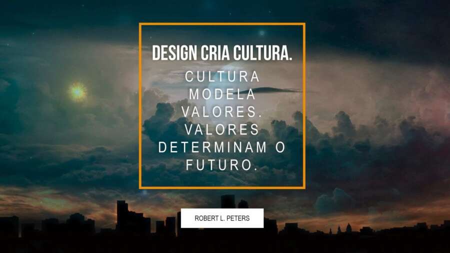 “Design cria cultura. Cultura modela valores. valores determinam o futuro.” Robert Peters